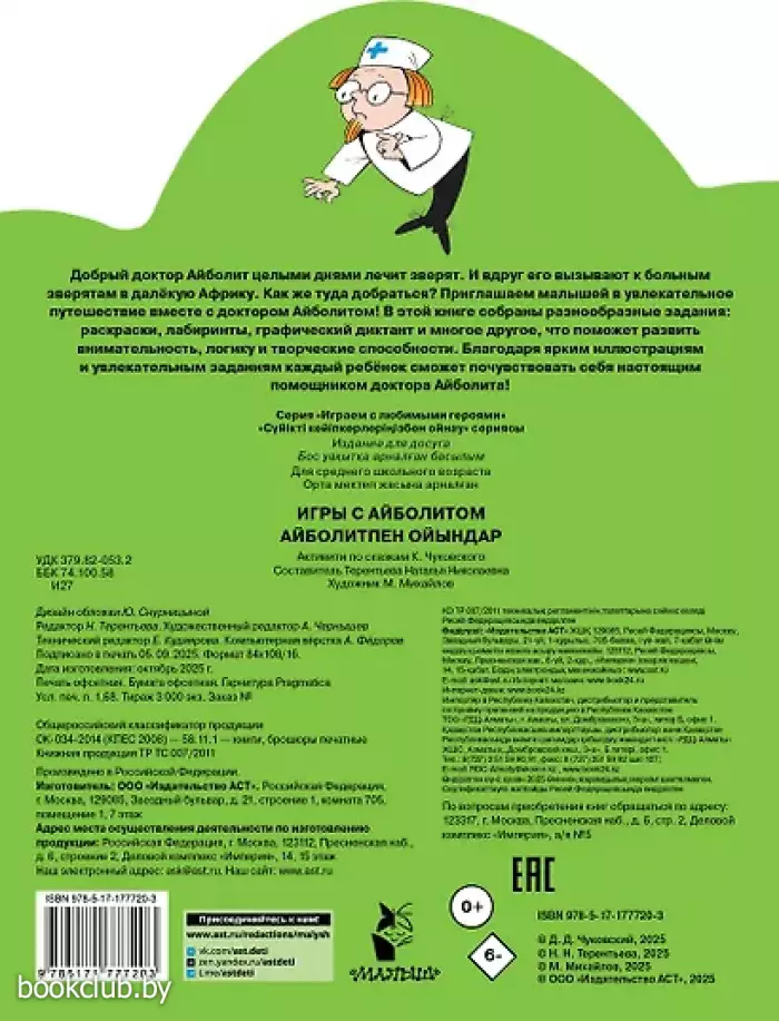 путешествие вместе с доктором Айболитом! В этой книге собраны разнообразные задания: