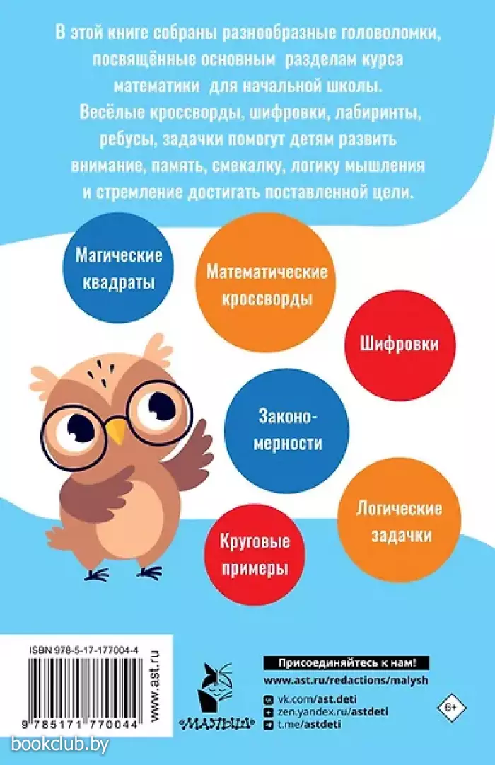 Если ваш ребёнок считает математику скучным предметом, предложите ему решить занимательные головоломки из этого сборника. Специально разработанные ребусы, кроссворды, шифровки, задачки помогут не только с пользой провести досуг, но и повторить основные разделы курса математики для начальной школы. Интересные задания направлены на развитие логики мышления, интеллекта, памяти, внимания, а также на формирование полезных для учёбы навыков: усидчивости и стремления достигать поставленной цели.