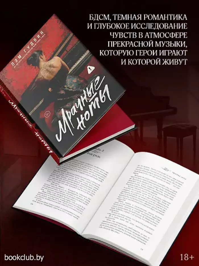 – Болезненно откровенная и пронзительно нежная темная романтика с BDSM-тематикой. Герои с десятилетней разницей в возрасте (18/28). История рассказана под аккомпанемент прекрасной музыки, играющей важную роль в романе.