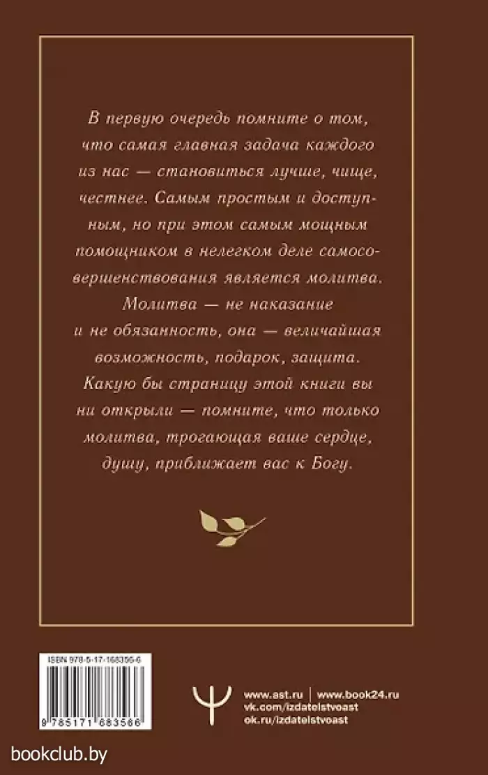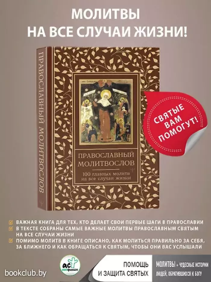 Ответы на такие вопросы вы найдете в этой книге. В ней не только собраны самые важные молитвы православным святым на все случаи жизни, но и подробно рассказано о правилах чтения молитв за себя и других, дома и в церкви, ежедневно и в особых ситуациях. В этом молитвослове также собраны истории людей — свидетельства чудес. Происходящих по молитвам Всевышнему и его святым угодникам. Пусть эти истории вдохновят вас и помогут вам найти свой путь к Богу.