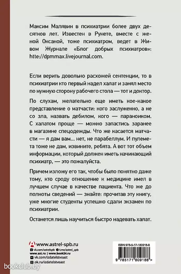 — Внутри вы найдете тот объем информации, который должен иметь любой начинающий психиатр.
