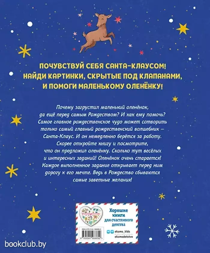 Перед вами — чудесная новогодняя сказка о том, как маленький оленёнок почувствовал себя важным и нужным. Милая, добрая и позитивная история расскажет, как поверить в свои силы, как найти для себя любимое занятие и, конечно, как не растеряться, если что-то вдруг не получается… Множество дополнительных деталей на страницах превратят знакомство с книгой в увлекательный квест, который так и хочется пройти до конца!