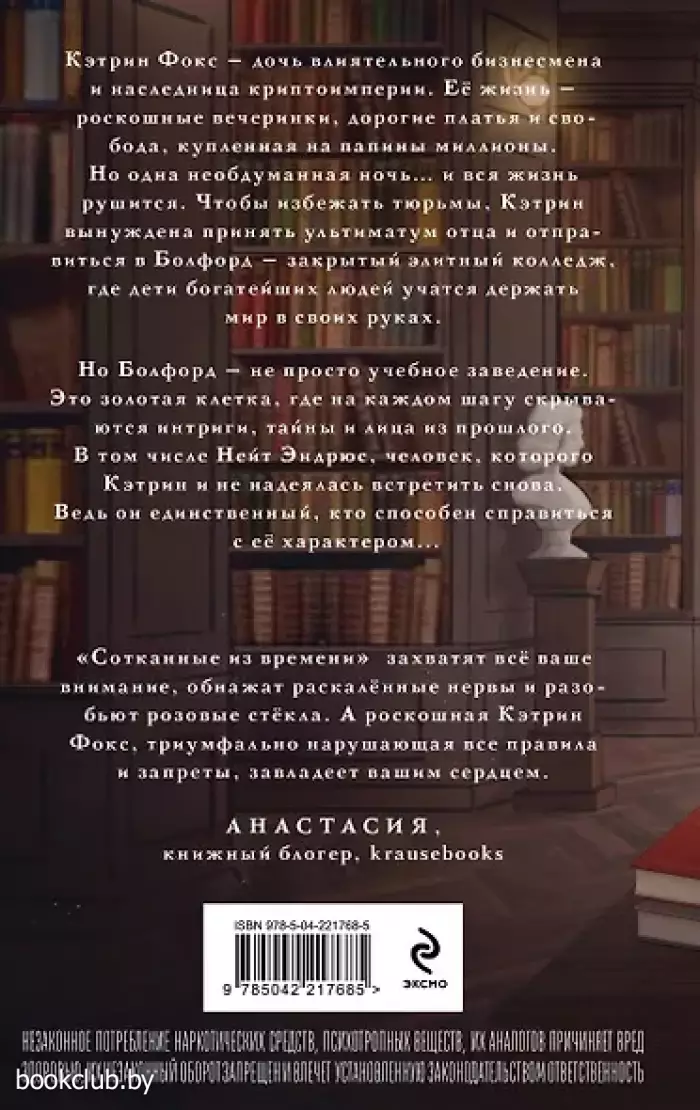 Кэтрин Фокс — дочь влиятельного бизнесмена и наследница криптоимперии. Ее жизнь — это роскошные вечеринки, дорогие платья и свобода, купленная на папины миллионы. Но одна необдуманная ночь и… вся жизнь рушится. Чтобы избежать тюрьмы, Кэтрин вынуждена принять ультиматум отца и отправиться в Болфорд — закрытый элитный колледж, где дети богатейших людей учатся держать мир в своих руках.