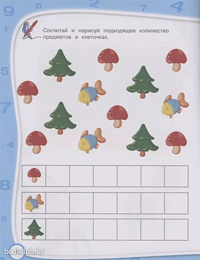 Выполняя увлекательные игровые задания, дошкольник легко запомнит цифры и будет быстро находить их среди других, научится сравнивать цифры и писать их, соотносить число с количеством предметов, составлять и решать простейшие примеры, используя картинки или числовую прямую. В процессе занятий у ребенка начнет формироваться математическое мышление, и он сделает свои первые шаги к изучению математики.