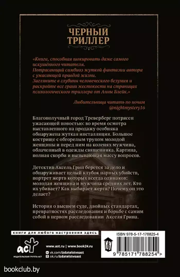 Книга от издательства «АСТ», входящая в серию «Черный триллер от Анны Блейк», принесет массу положительных впечатлений от прочтения и займет достойное место в вашей библиотеке. Для вашего удобства при оформлении заказа по телефону назовите код товара: 415942