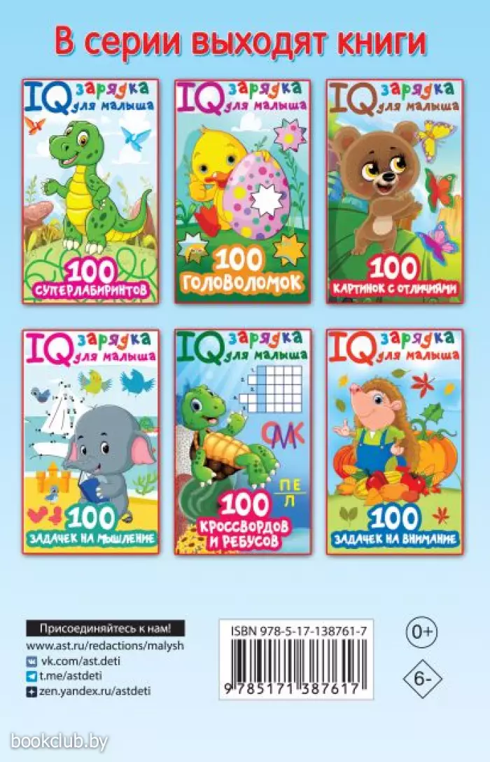 Книги издательства «АСТ» из серии «IQ зарядка для малыша» - отличное приобретение для вас и ваших близких. Для вашего удобства при оформлении заказа по телефону назовите код товара: 176605