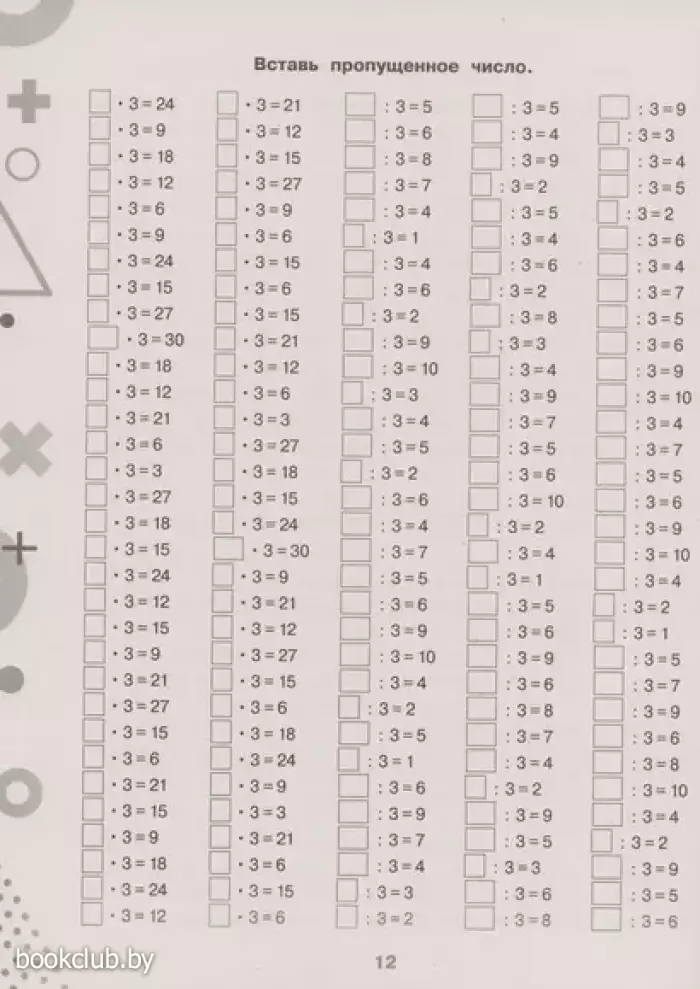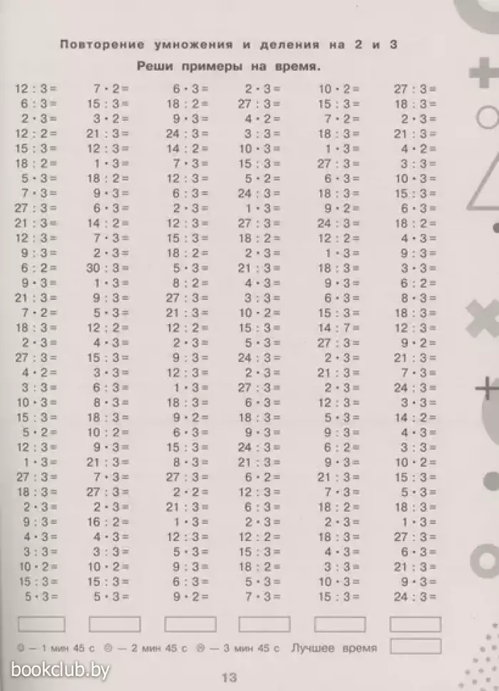 Отличная тренировка навыков счета на примерах умножения и деления! Сотни примеров разного уровня сложности помогут вашему ученику быстро освоить действия с числами и запомнить таблицу умножения.