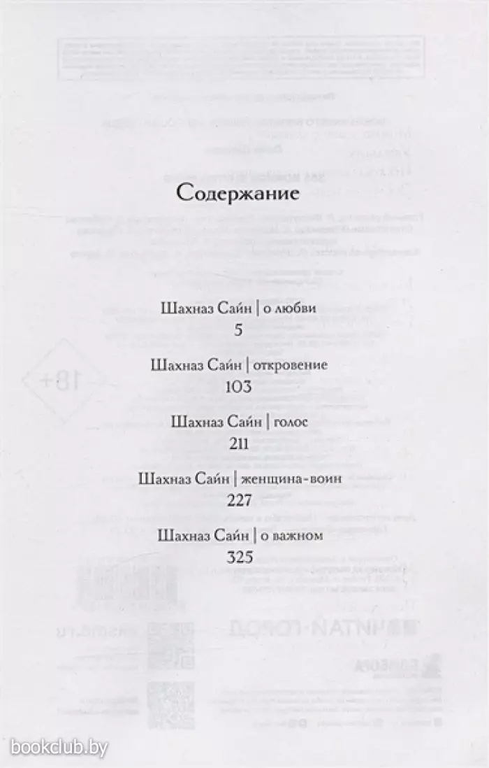 Книга Шахназ состоит из 365 стихов и цитат, объединенных в пять глав: