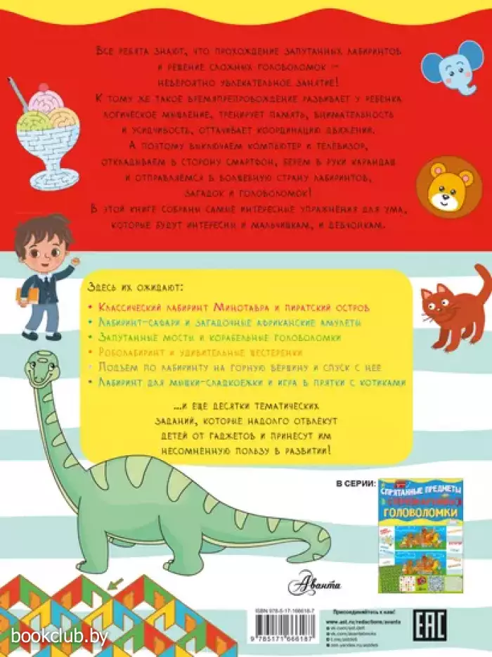 В книге собраны интересные и увлекательные лабиринты и головоломки разного уровня сложности. Вооружившись карандашом или ручкой вместо смартфона, а также терпением и любопытством, ребенок сможет заполнить свое свободное время не игровым и мультипликационным контентом, а весьма полезным развивающим занятием — прохождением лабиринтов и разгадыванием головоломок. Тренировка памяти инаблюдательности, логического мышления и внимательности — главная задача этого издания, где каждый школьник сможет выбрать для себя задание по силам и интересам.