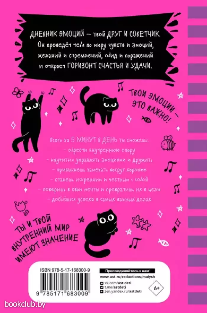 Мотивационный дневник поможет детям развить эмоциональный интеллект, позитивное мышление и дисциплинированность, разобраться в своём характере, научиться дружить. Он проведёт их по миру чувств и эмоций, желаний и стремлений, обид и поражений, чтобы вывести на горизонт счастья и удачи. Подскажет, как обрести внутреннюю опору, научит верить в мечту, ставить цели, быть искренним и честным с собой, ответственно относиться к своей жизни. Это прекрасная замена гаджетам и отличный подарок, ведь вести дневник самонаблюдений намного полезнее и интереснее! В основе пособия – проверенные и эффективные психологические техники, адаптированные специально для детей сертифицированным тренером и экспертом по развитию эмоционального интеллекта. Книги издательства «АСТ» из серии «Книга о себе: мотивационный дневник» станут прекрасным дополнением вашей библиотеки. Для вашего удобства при оформлении заказа по телефону назовите код товара: 411605