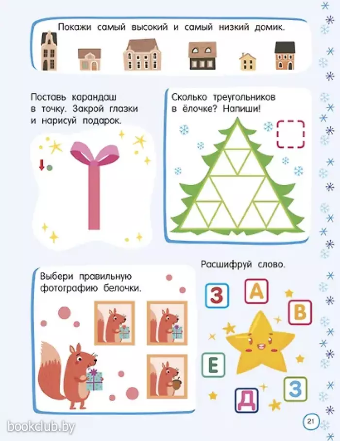 «500 новогодних заданий для дошколят. 5–7 лет» — это прекрасная активити-книга с красивыми новогодними рисунками. 80 страниц с заданиями в картинках — всё для веселья и отличного настроения. На каждой странице — увлекательные игры и развлечения: головоломки, викторины с буквами и словами, фанты, сравнилки, копилка добрых дел, находилки, пословицы и скороговрки, дорисовашки, запоминалки, ребусы, бродилки и лабиринты, загадки. Идей хватит на все праздники — тренируем фантазию, смекалку, креатив, гибкость ума, наблюдательность — играем, соревнуемся, радуемся, веселимся всей семьёй и создаём праздничную атмосферу. Положите под ёлочку нашу книжку — такой подарок сделает счастливым любого ребенка!