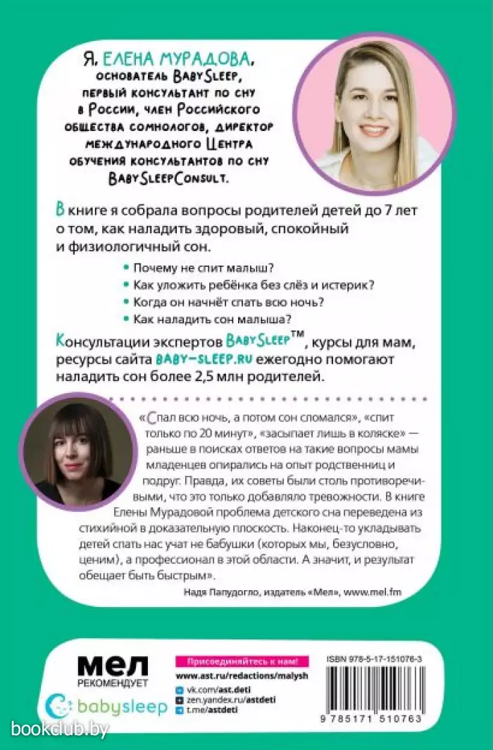 Елена Мурадова, первый профессиональный консультант по сну в России и директор центра Baby Sleep пошагово разбирает самые актуальные запросы родителей и дает конкретные рекомендации, которые помогут привести в норму сон малыша. Это пособие для родителей расскажет: