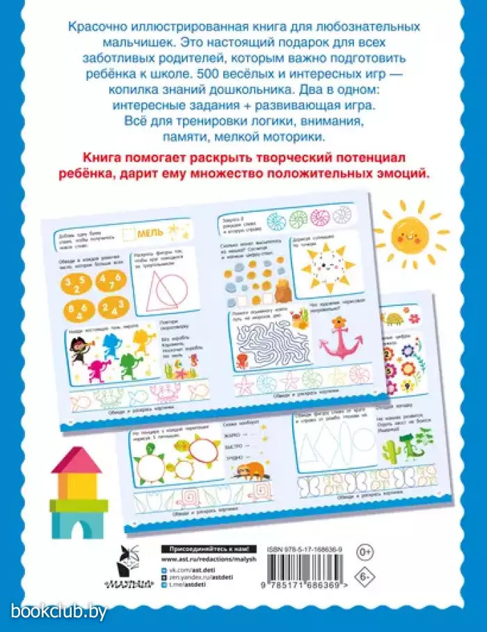 "500 увлекательных заданий для мальчиков. 5—7 лет" — много-много головоломок, игр с буквами и словами, сравнилок, находилок, дорисовашек, ребусов, бродилок и лабиринтов, загадок, задачек на логику и сообразительность. Предложите компании мальчишек угадывать зашифрованные слова, сравнивать картинки в поисках отличий, считать, размышлять, находить закономерности, проходить лабиринты — такие интеллектуальные занятия расширяют кругозор и словарный запас, формируют графические навыки, развивают мышление, память, внимание, наблюдательность, смекалку и творческие способности. Ребёнок откроет первую страницу — и уже не сможет оторваться!