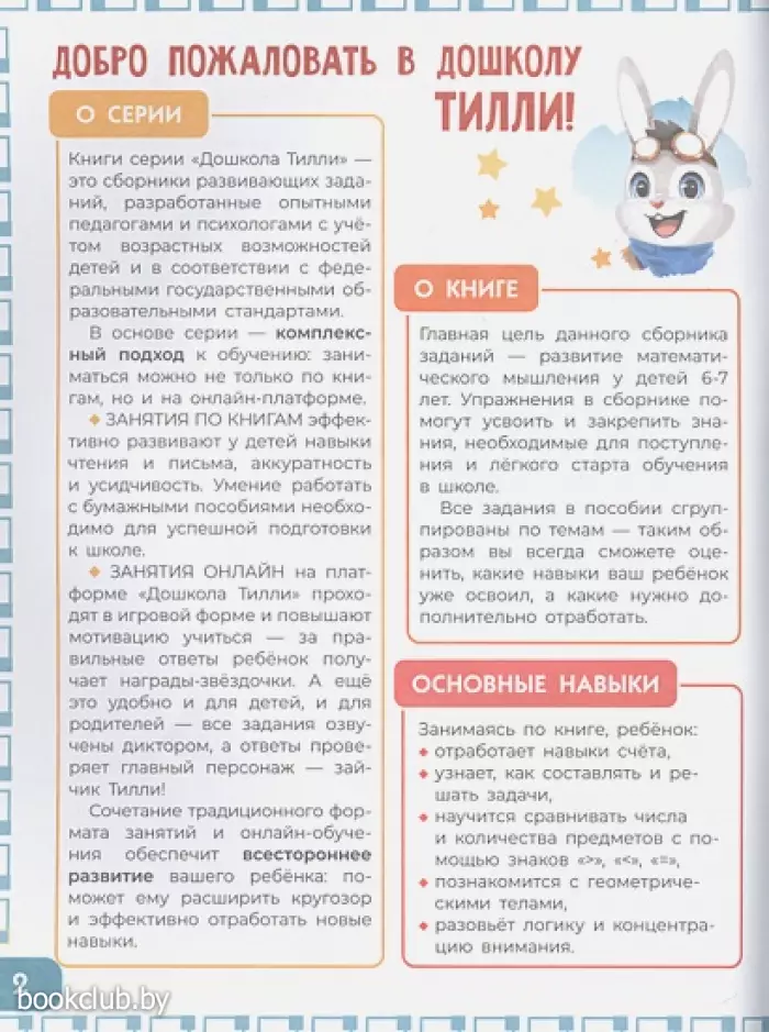 6-7 лет. Дошкола Тилли. Математика. Развивающие задания для подготовки к школе
