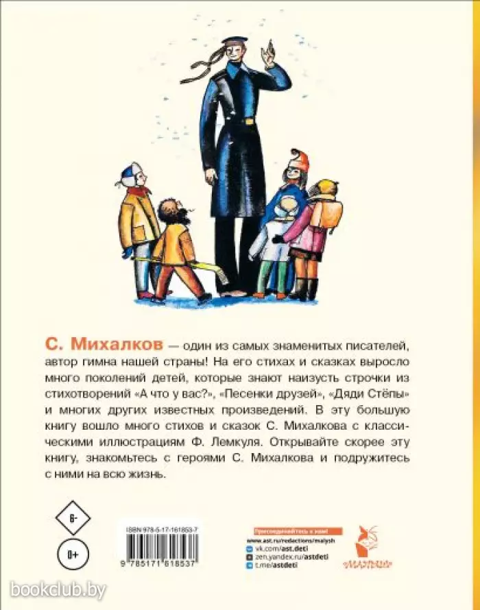 Сергей Михалков – автор трёх Гимнов нашей страны, самый известный поэт, писатель, сценарист, публицист. Фёдор Лемкуль – художник с узнаваемым стилем, который запоминается с первого взгляда. Он проиллюстрировал множество книг, в том числе книги Даниила Хармса, С. Маршака, К. Чуковского, Марка Твена и других классиков. Особое место в его творчестве занимают иллюстрации к стихам и сказкам С. Михалкова, которые издавались миллионными тиражами. Теперь и у вас есть уникальная возможность пополнить библиотеку такой книгой. Книга от издательства «АСТ», входящая в серию «Когда я был маленьким...», принесет массу положительных впечатлений от прочтения и займет достойное место в вашей библиотеке. Для вашего удобства при оформлении заказа по телефону назовите код товара: 400868