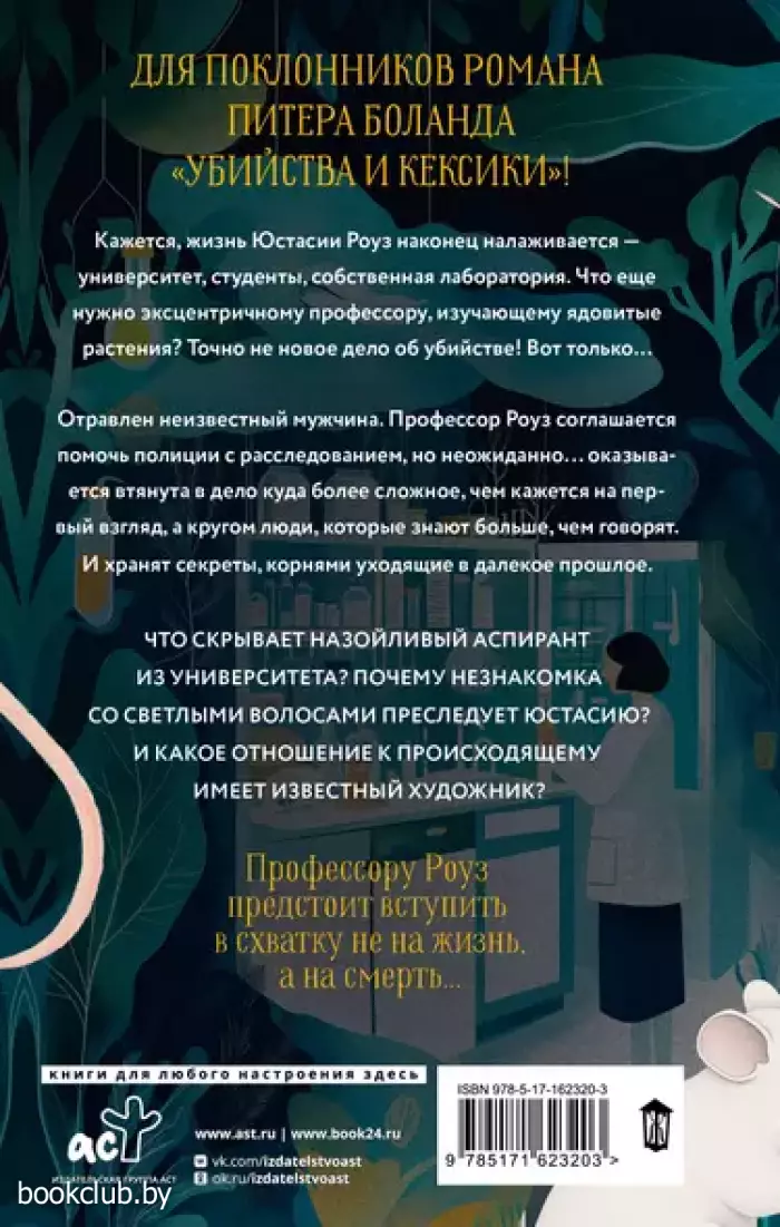Кажется, жизнь Юстасии Роуз наконец налаживается — университет, студенты, собственная лаборатория. Что еще нужно эксцентричному профессору, изучающему ядовитые растения? Точно не новое дело об убийстве! Вот только… Отравлен неизвестный мужчина. Профессор Роуз соглашается помочь полиции с расследованием, но неожиданно... оказывается втянута в дело куда более сложное, чем кажется на первый взгляд, а кругом люди, которые знают больше, чем говорят. И хранят секреты, корнями уходящие в далекое прошлое. Что скрывает назойливый аспирант из университета? Почему незнакомка со светлыми волосами преследует Юстасию? И какое отношение к происходящему имеет известный художник? Профессору Роуз предстоит вступить в схватку не на жизнь, а на смерть…