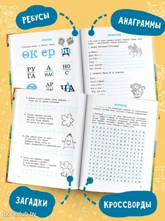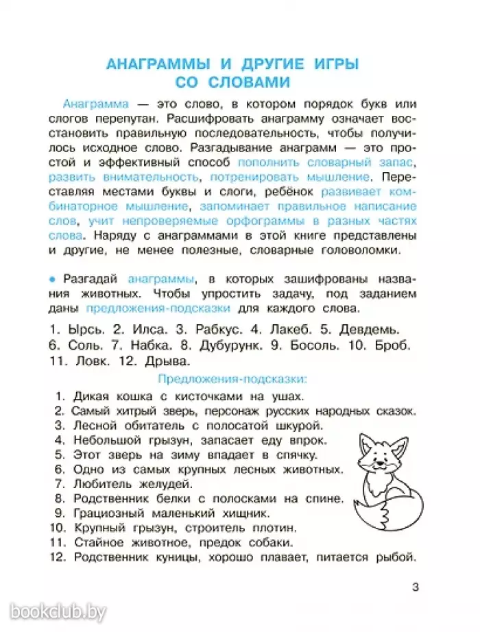 В рабочей тетради «Анаграммы и другие игры со словами» представлены увлекательные словарные головоломки для учеников начальной школы: анаграммы, ребусы, кроссворды, загадки. Чтобы разгадать анаграмму, нужно переставить буквы в слове так, чтобы получилось новое слово. Таким образом ученик не только запоминает правильное написание слов, но также развивает мышление, внимание, память. Благодаря занятиям по книге, ребёнок научится писать грамотно, пополнит словарный запас, разовьёт творческие способности, узнает много нового.