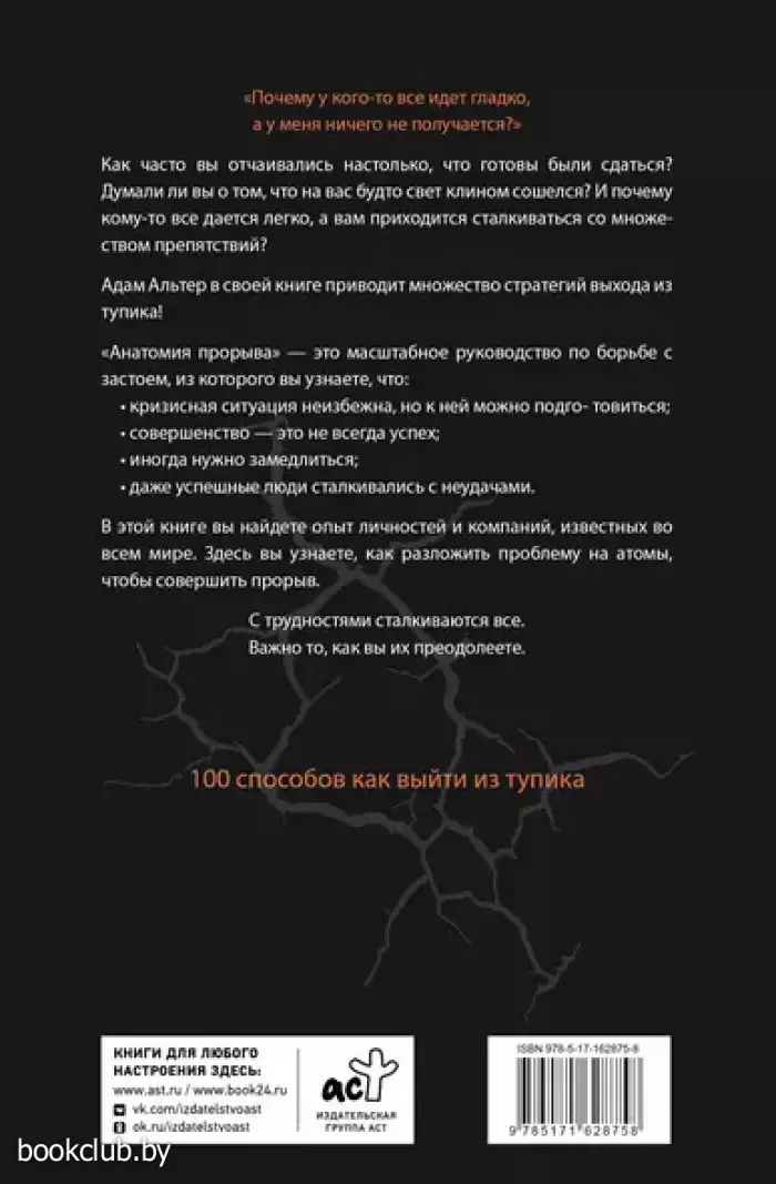 Книга «Анатомия прорыва. Как купировать демотивацию и дойти до цели» - станет прекрасным дополнением вашей библиотеки. Для вашего удобства при оформлении заказа по телефону назовите код товара: 407966