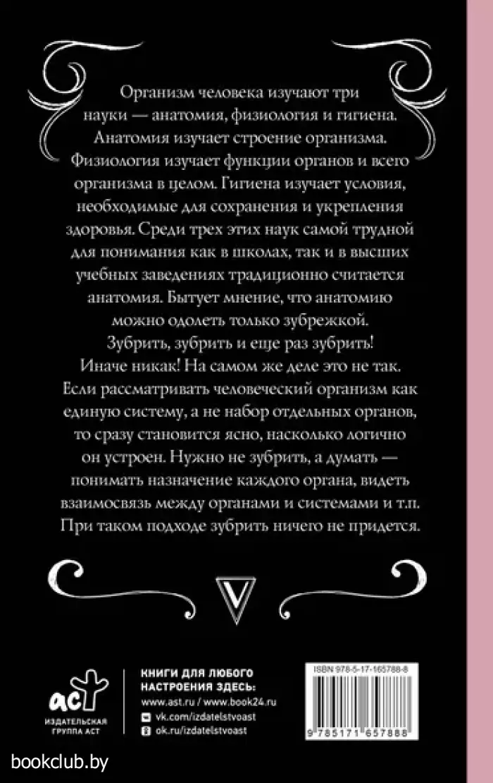 Организм человека изучают три науки — анатомия, физиология и гигиена. Анатомия изучает строение организма. Физиология изучает функции органов и всего организма в целом. Гигиена изучает условия, необходимые для сохранения и укрепления здоровья. Среди трех этих наук самой трудной для понимания как в школах, так и в высших учебных заведениях традиционно считается анатомия. Бытует мнение, что анатомию можно одолеть только зубрежкой. Зубрить, зубрить и еще раз зубрить! Иначе никак! На самом же деле это не так. Если рассматривать человеческий организм как единую систему, а не набор отдельных органов, то сразу становится ясно, на сколько логично он устроен. Нужно не зубрить, а думать — понимать назначение каждого органа, видеть взаимосвязь между органами и системами и т.п. При таком подходе зубрить ничего не придется.