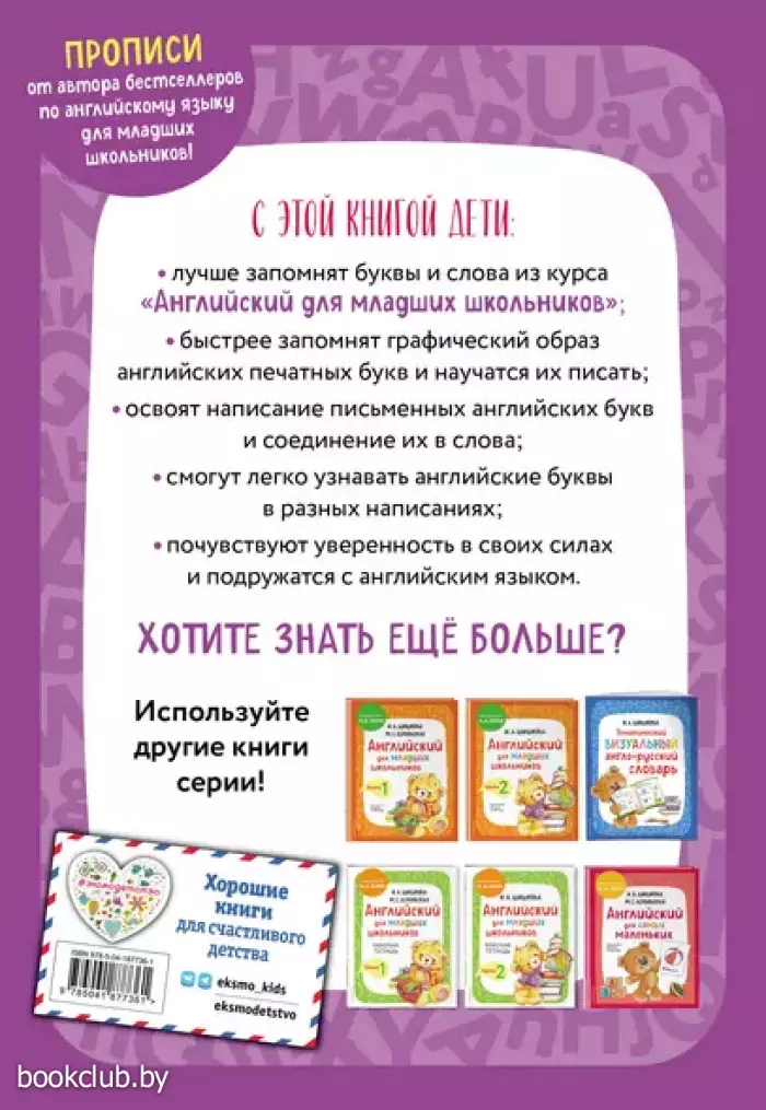 С прописью «Английский для младших школьников» «начинающий» ученик быстро превратится в «продолжающего», уверенного в своих силах и готового раскрывать тайны английского языка!