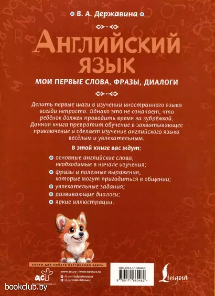 Эта книга станет незаменимым спутником для родителей, стремящихся помочь детям сделать первые шаги в изучении английского языка. В этом издании собраны важнейшие английские слова и выражения, необходимые начинающим учить язык. Все слова и фразы распределены по темам, что облегчает их запоминание и использование. Яркие иллюстрации и увлекательные упражнения превращают обучение в интересное занятие. Диалоги и практические задания помогут детям научиться применять новые слова в реальных ситуациях, делая их уверенными пользователями английского языка.