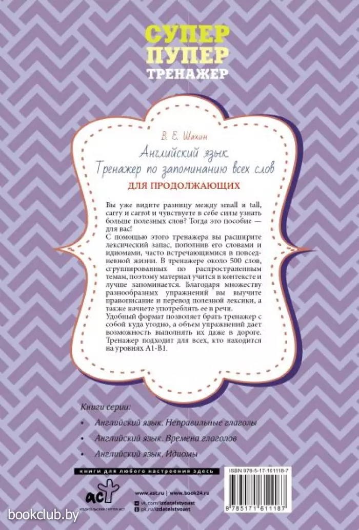 Книги издательства «АСТ» из серии «Суперпупертренажер» станут прекрасным дополнением вашей библиотеки. Для вашего удобства при оформлении заказа по телефону назовите код товара: 198252