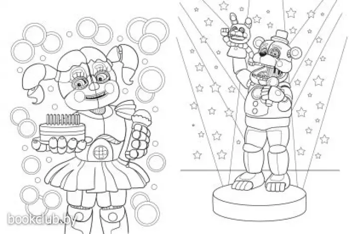 Уникальная раскраска по любимой компьютерной игре «Five Nights at Freddy's» (неофициальное издание), которая станет настоящей находкой для маленьких фанатов ФНАФ.