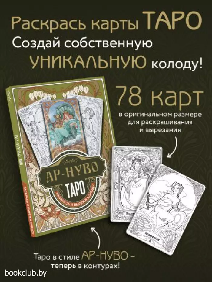 Если вас завораживают плавные линии, нежные образы и светлая энергетика модерна, то вам определенно понравится эта раскраска из серии "Арт-колоды Таро"!