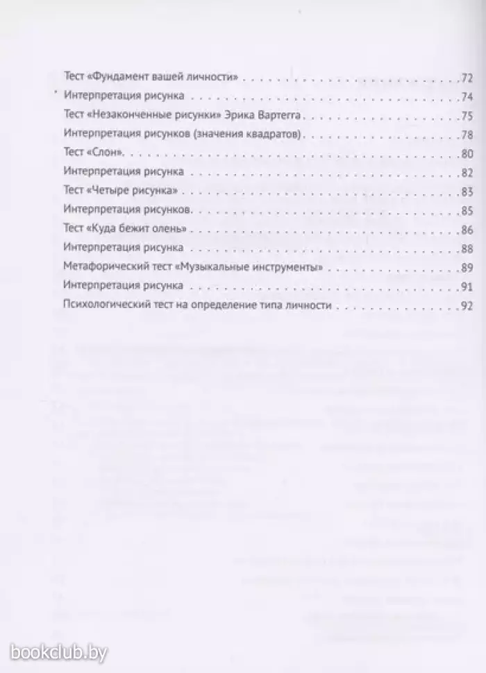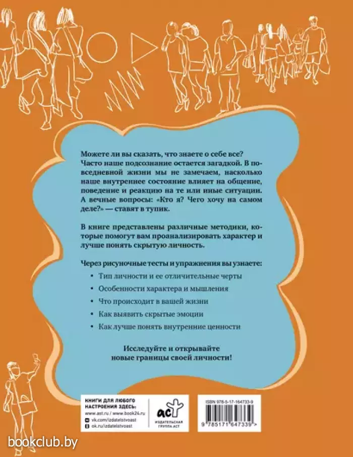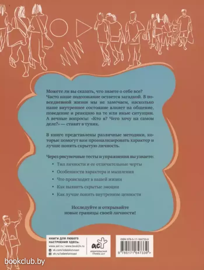 Можете ли вы сказать, что знаете о себе все? Часто наше подсознание остается загадкой. В повседневной жизни мы не замечаем, насколько наше внутреннее состояние влияет на общение, поведение и реакцию на те или иные ситуации. А вечные вопросы: "Кто я? Чего хочу на самом деле?" – ставят в тупик. В книге представлены различные методики, которые помогут вам проанализировать характер и лучше понять скрытую личность. Через рисуночные тесты и упражнения вы узнаете: • Тип личности и ее отличительные черты • Особенности характера и мышления • Что происходит в вашей жизни • Как выявить скрытые эмоции • Как лучше понять внутренние ценности Исследуйте и открывайте новые границы своей личности!