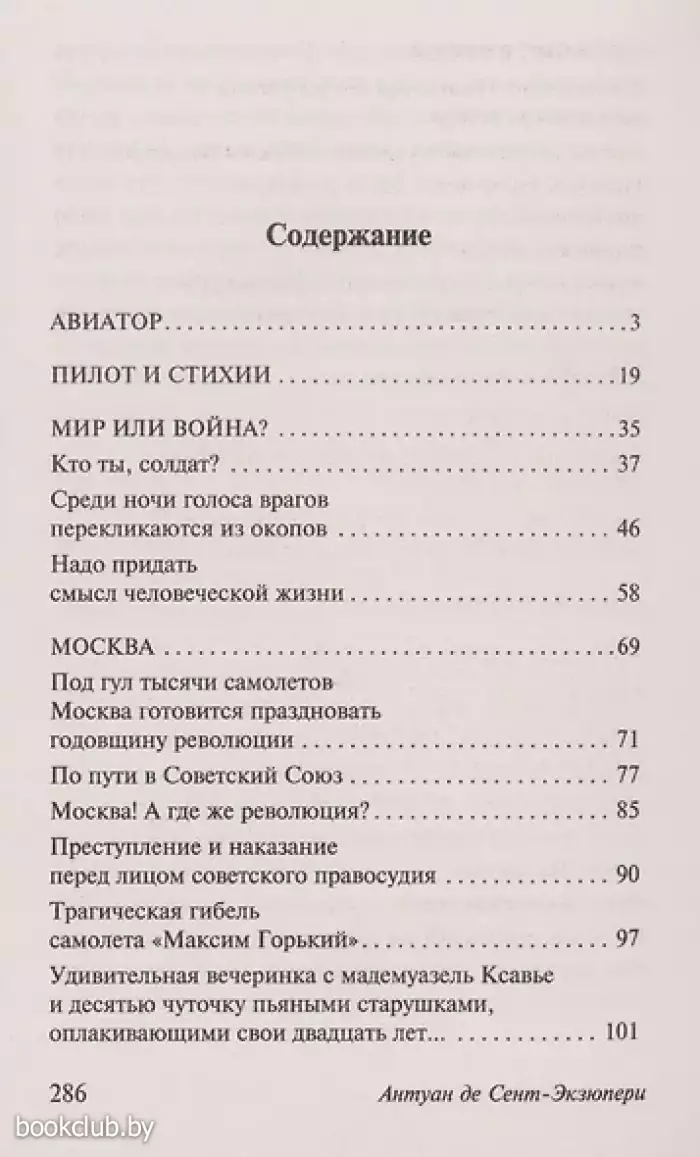 В сборнике вошли разнообразные работы Экзюпери: проза, публицистика, военные записки и радиообращения. Рассказ "Авиатор" о капризной фортуне, очерк "Пилот и стихии" о борьбе летчика с непогодой, репортажи о поездках в постреволюционный Советский Союз и Испанию, объятую гражданской войной. Издание дополнили письма Леону Верту, верному другу и соратнику, которому "Тонио" посвятил "Маленького принца".