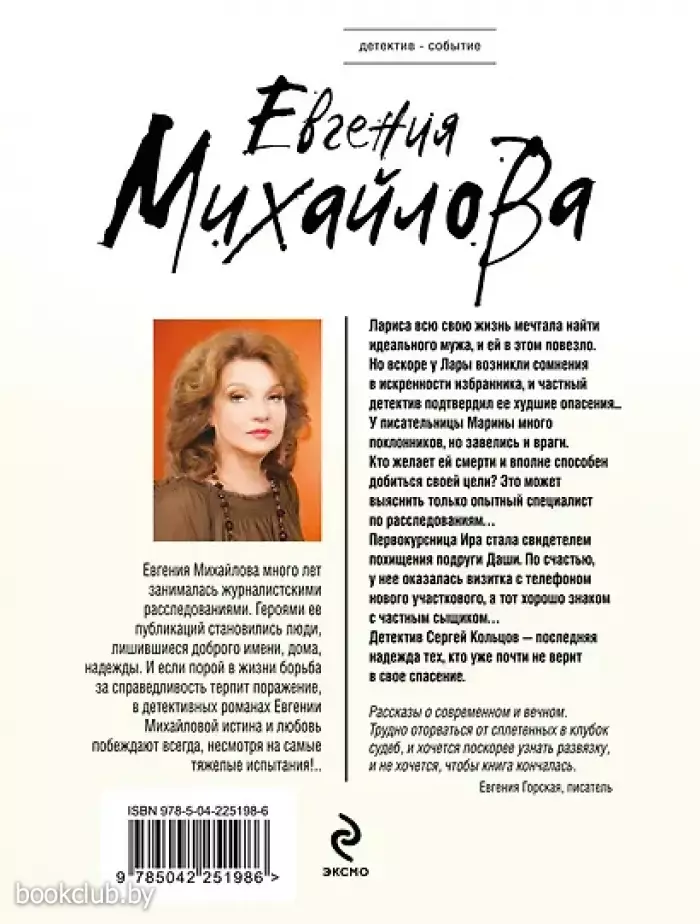 У писательницы Марины много поклонников, но завелись и враги. Кто желает ей смерти и вполне способен добиться своей цели? Это может выяснить только опытный специалист по расследованиям…