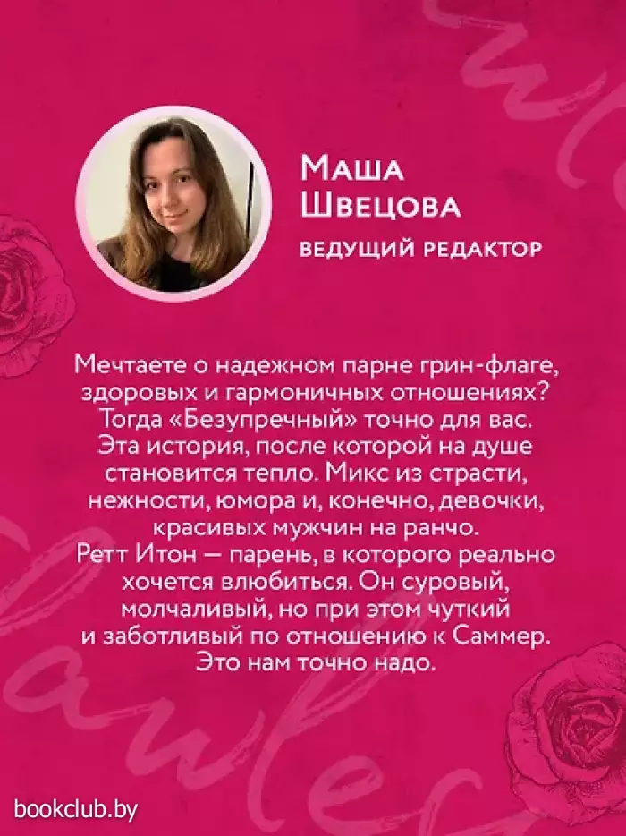 Авторская серия в новом оформлении в фирменном покете с клапанами. Абсолютный хит TikTok, от которого в животе порхают бабочки, в новом оформлении. История, в которой девушку ценят, любят, уважительно относятся и готовы ради будущего с ней отказаться от карьеры. Книга окунает в атмосферу маленького городка с трогательной историей любви настоящего мужчины («гринфлаг»), выросшего на ранчо, с самодостаточной героиней. Их любовью хочется восхищаться, в нее веришь, с трепетом следишь за ее зарождением и развитием. В книге показаны равноправные партнерские отношения, где герои учатся принимать друг друга со всеми недостатками. На бескрайних просторах ранчо Честнат-Спрингс, где обитают дерзкие самоуверенные ковбои, Ретт Итон — звезда родео и профессиональный наездник на быках — оказывается в центре скандалов. Грубый ковбой со шрамами от бесчисленных падений рискует потерять все: спонсоров, репутацию и смысл жизни. Чтобы спасти его карьеру, агент поручает задачу своей дочери Саммер — амбициозной городской принцессе, которая привыкла контролировать чувства и не поддаваться слабостям. Теперь она должна превратить бунтаря в идеального джентльмена. За маской грубого ковбоя Саммер видит нежного и внимательного мужчину, который согревает ее своими объятиями и заботой. Ретт, в свою очередь, находит в Саммер ту, кто заставляет его забыть о боли прошлого. Но смогут ли они сохранить свою любовь в мире, где каждый их шаг находится под пристальным вниманием?Стильный покет с клапанами, фольгой на обложке и кремовой бумагой. Книги издательства «ЭКСМО» из серии «Тропы суровой нежности» - отличное приобретение для вас и ваших близких. Для вашего удобства при оформлении заказа по телефону назовите код товара: 417101