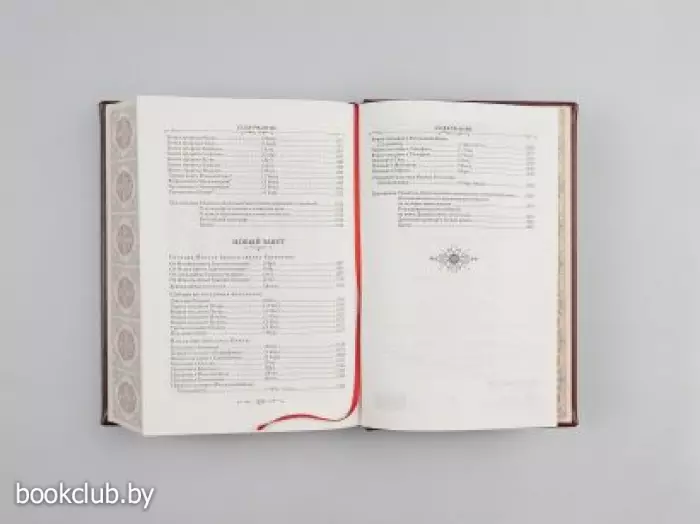Подарочное оформление Библии в синодальном переводе и с указателем евангельских и апостольских церковных чтений, последовательностью евангельских событий по четырем евангелистам, последовательностью событий по книге Деяний святых апостолов, картами и другой важной справочной информацией.