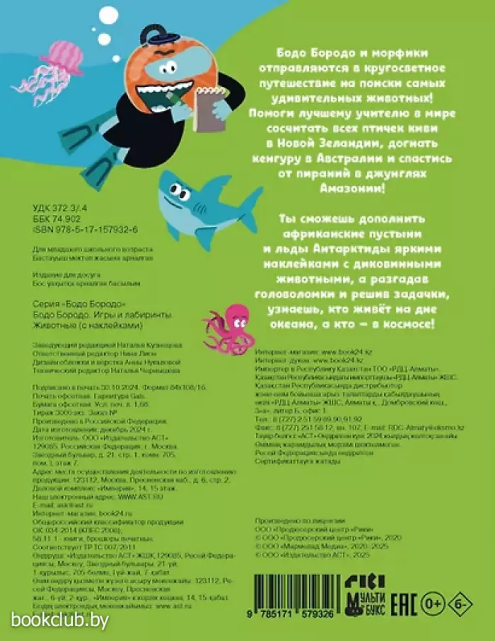 Бодо Бородо и морфики отправляются в кругосветное путешествие на поиски самых удивительных животных! Помоги лучшему учителю в мире сосчитать всех птичек киви в Новой Зеландии, догнать кенгуру в Австралии и спастись от пираний в джунглях Амазонии!
