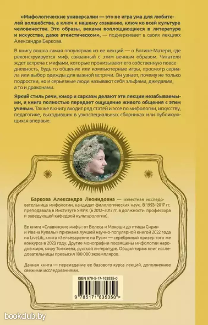 «Мифологические универсалии — это не игра ума для любителей волшебства, а ключ к нашему сознанию, ключ ко всей культуре человечества. Это образы, веками воплощающиеся в литературе и искусстве, даже атеистическом», — подчеркивает в своих лекциях Александра Баркова.