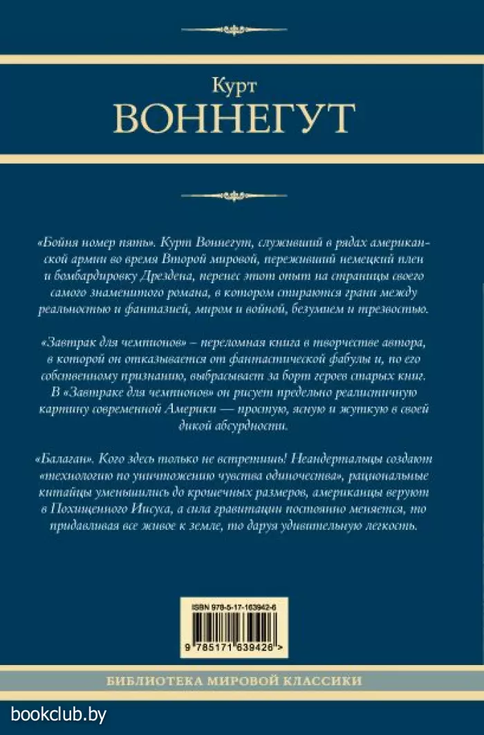 В сборник включены романы "Бойня номер пять", "Завтрак для чемпионов" и "Балаган".