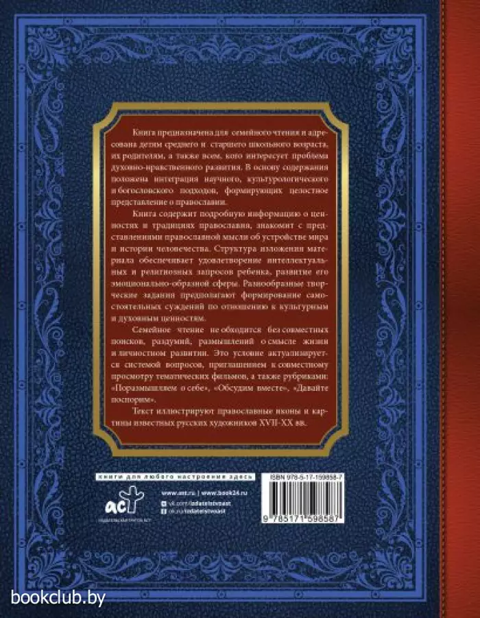 Книга предназначена для семейного чтения и адресована детям среднего и старшего школьного возраста, их родителям, a также всем, кого интересует проблема духовно-нравственного развития. В основу содержания положена интеграция научного, культурологического и богословского подходов, формирующих целостное представление о православии.