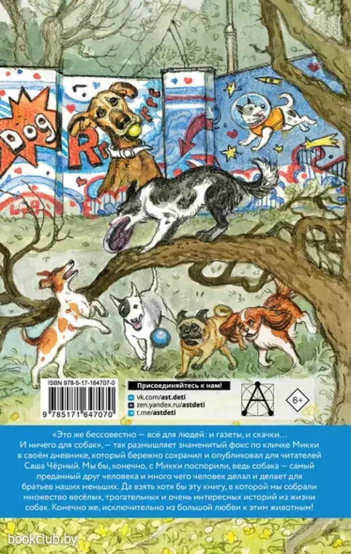 «Это же бессовестно – всё для людей: и газеты, и скачки... И ничего для собак», – так размышляет знаменитый фокс по кличке Микки в своём дневнике, который бережно сохранил и опубликовал для читателей Саша Чёрный. Мы бы, конечно, с Микки поспорили, ведь собака – самый преданный друг человека и много чего человек делал и делает для братьев наших меньших. Да взять хотя бы эту книгу, в которой мы собрали множество весёлых, трогательных и очень интересных историй из жизни собак. Конечно же, исключительно из большой любви к этим животным!