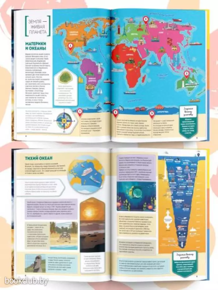 Помимо доступных описаний, прекрасных иллюстраций, познавательных карт и интересных фактов, в книге на каждом развороте имеются самые разные задания для юных знатоков. Ребятам предстоит ответить на вопросы для чего была построена Великая Китайская стена и какая часть Солнца самая горячая, на какие группы делятся все живые организмы планеты, назвать самое большое и самое маленькое государство в мире, рассказать, на какие группы делятся все живые организмы на планете, найти на карте самый большой остров и крупнейшие реки мира, объяснить, почему на полюсах Земли так холодно.