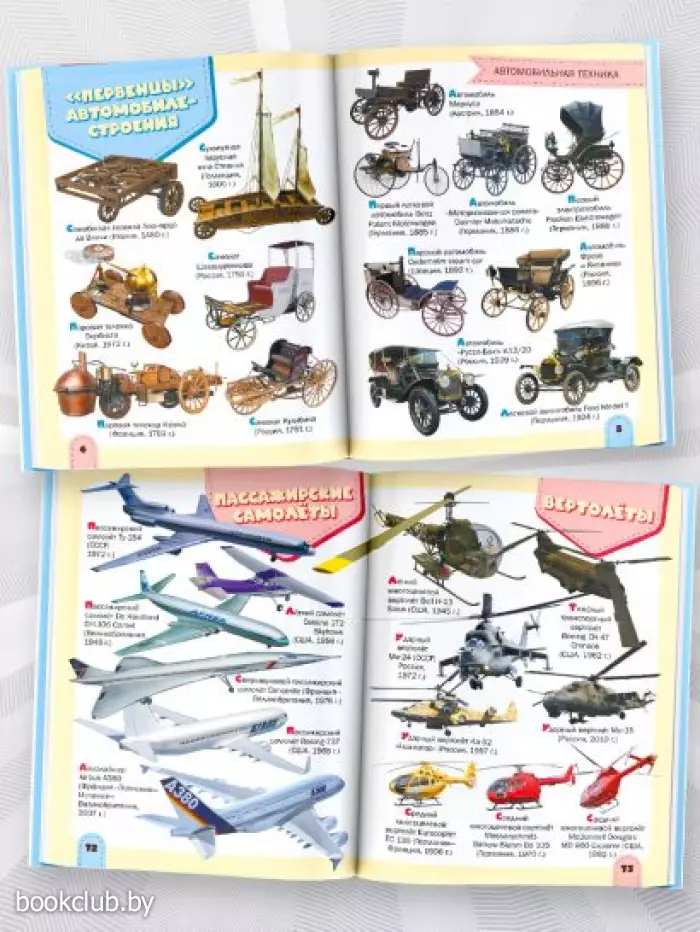 машины, корабли и подводные лодки, самолёты и вертолёты, оружие и военная техника, космические ракеты,