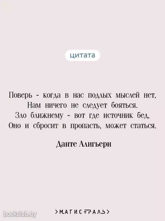 Данте Алигьери — великий итальянский поэт, мыслитель, автор знаменитой «Комедии» (позднее названной «Божественной»). В годы политического изгнания, на «половине жизненного пути», Данте создал бессмертную «Божественную комедию», величайший памятник поэтической культуры и настоящую энциклопедию средневекового мировоззрения. Автор поэмы представлен в ней как человек, удостоившийся Божьей милости совершить путешествие к Господу через три царства загробного мира — путешествие от мрачного неблагополучия греховности и сомнений к счастью истины и светлого идеала. Книги издательства «ЭКСМО» из серии «Магистраль. Главный тренд» станут прекрасным дополнением вашей библиотеки. Для вашего удобства при оформлении заказа по телефону назовите код товара: 417028