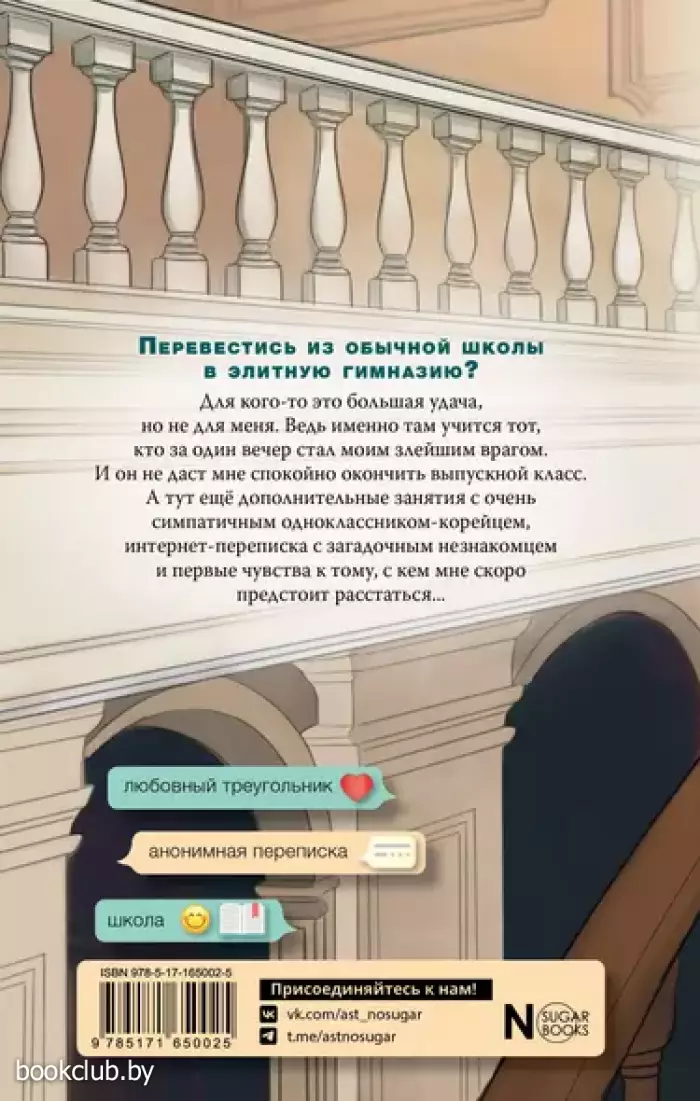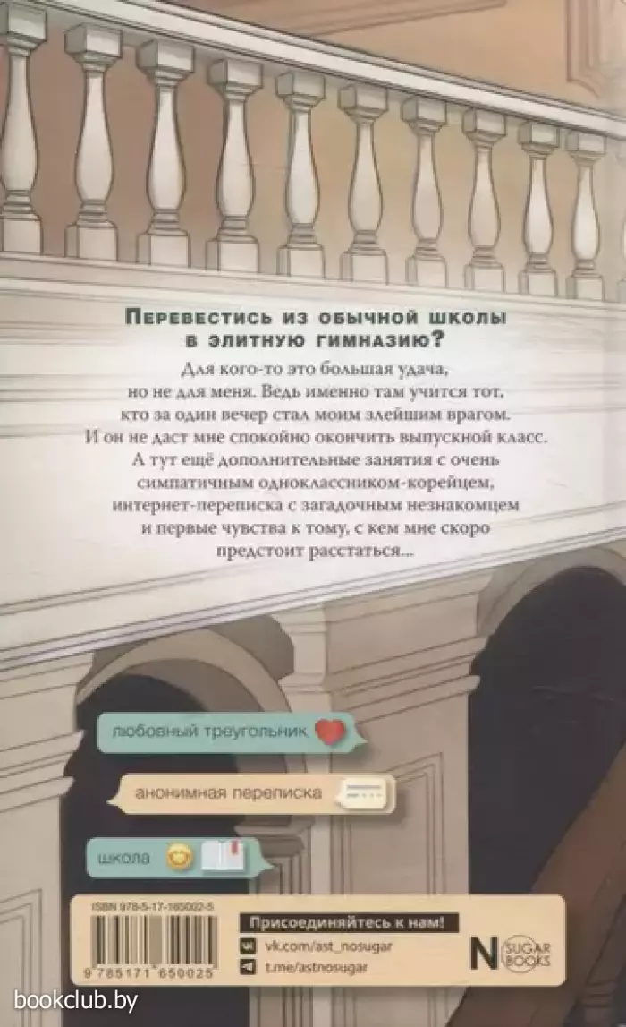 Перевестись из обычной школы в элитную гимназию? Для кого-то это большая удача, но не для меня. Ведь именно там учится тот, кто за один вечер стал моим злейшим врагом. И он не даст мне спокойно окончить выпускной класс. А тут ещё дополнительные занятия с очень симпатичным одноклассником-корейцем, интернет-переписка с загадочным незнакомцем и первые чувства к тому, с кем мне скоро предстоит расстаться...