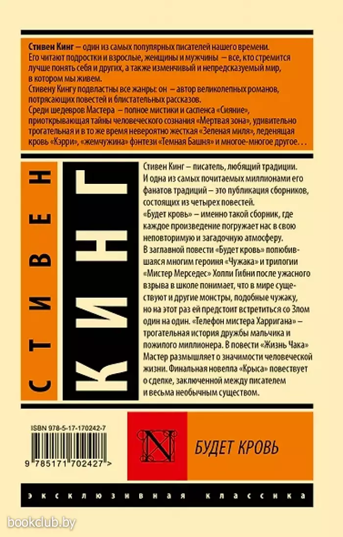В заглавной повести "Будет кровь" полюбившаяся многим героиня "Чужака" и трилогии "Мистер Мерседес" Холли Гибни после ужасного взрыва в школе понимает, что в мире существуют и другие монстры, подобные чужаку, но на этот раз ей предстоит встретиться со Злом один на один.