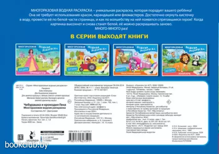 "Чебурашка и крокодил Гена" — не обычная раскраска, а волшебная книжка для маленьких художников. Малыши узнают, что рисовать и раскрашивать можно не только карандашами, фломастерами или красками, но и водой. Проведёшь мокрой кисточкой по бумаге — и перед тобой яркая картинка. Когда вода высохнет, рисунок снова станет чёрно-белым, и его можно будет раскрашивать заново!