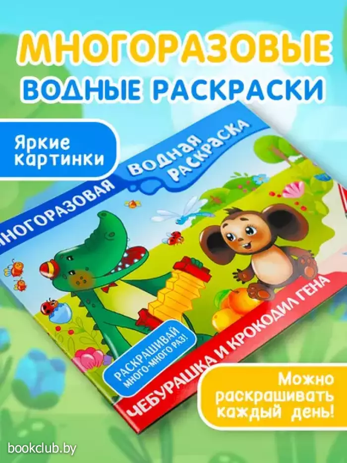 Чебурашка и Крокодил Гена. Многоразовая водная раскраска