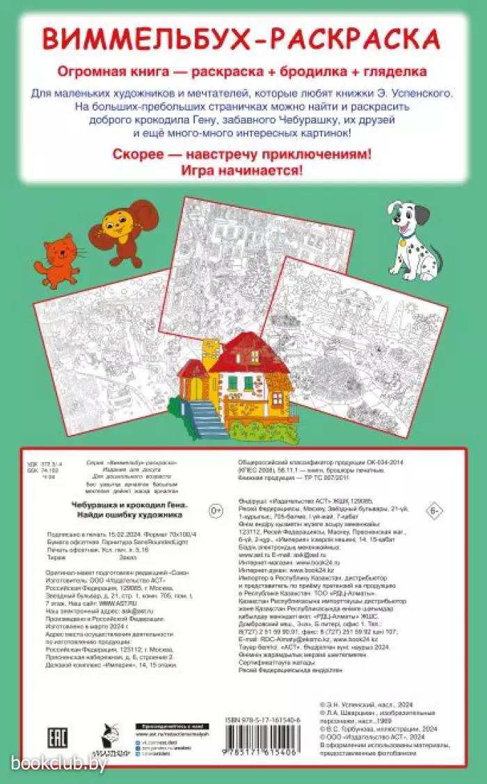 Хочется порадовать детей, подарить им что-то очень запоминающееся и одновременно полезное? Виммельбух-раскраска большого формата «Чебурашка и крокодил Гена. Найди ошибку художника» — это идеальный вариант для подарка малышу!