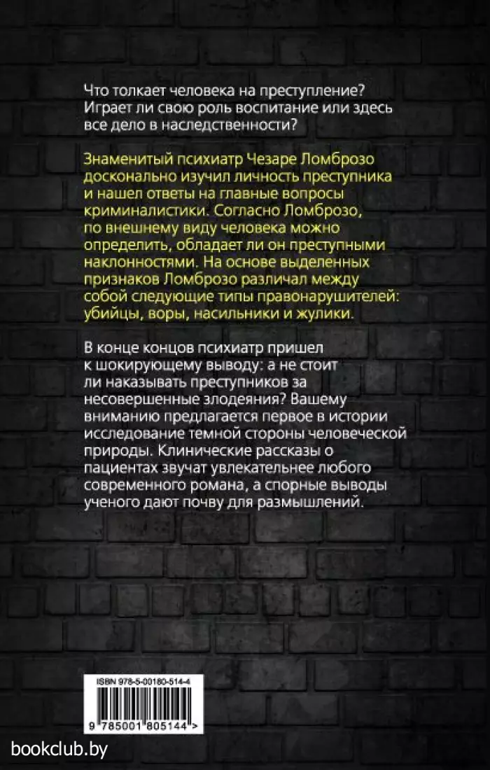 Что толкает человека на преступление? Играет ли свою роль воспитание или здесь все дело в наследственности? Знаменитый психиатр Чезаре Ломброзо досконально изучил личность преступника и нашел ответы на главные вопросы криминалистики.