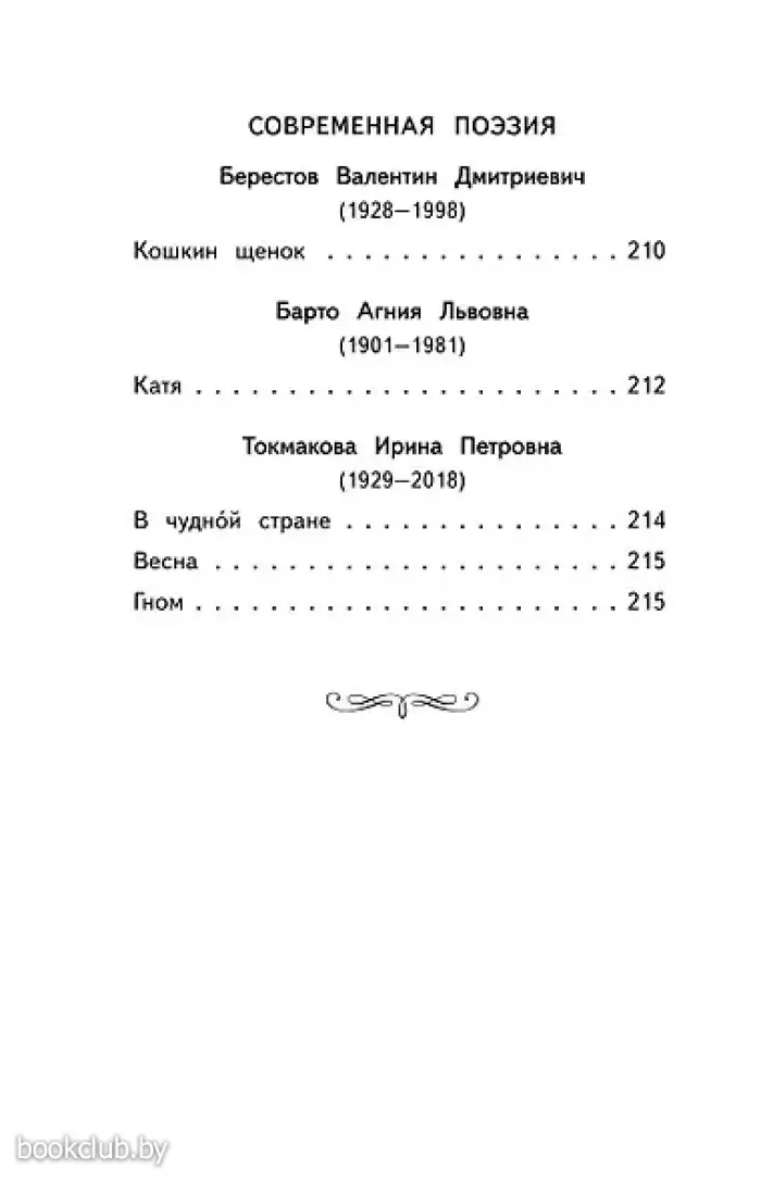 Современная поэзия Барто, Берестова и Токмаковой.