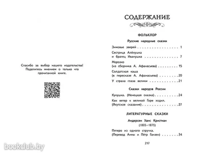 Сказки народов России, Андерсен и Перро, сказки русских писателей — Одоевского, Мамина-Сибиряка и Даля.