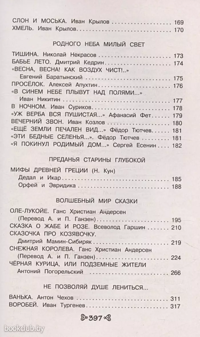 Хрестоматия содержит произведения, которые задают для чтения на лето в большинстве школ России. В состав хрестоматии вошли русские народные и авторские зарубежные сказки, басни, мифы, произведения отечественных писателей и поэтов XIX—XX веков: Тютчева, Плещеева, Сурикова, Бунина, Некрасова, Крылова, Куприна, Мамина-Сибиряка, Гаршина, Чехова, Житкова, Пришвина, Пермяка, Григоровича, Погорельского, Куна, Андерсена и других. Все тексты без сокращений. Хрестоматия направлена на то, чтобы привить ученику любовь к чтению, расширить его кругозор, развить речь. Кроме того, книга имеет очень удобный формат, ее можно взять с собой в дорогу или на отдых.